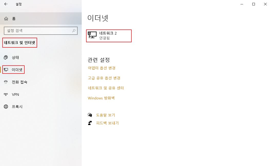이더넷을 클릭을 한후에 현재 사용하는 활성 네트워크를 선택합니다.